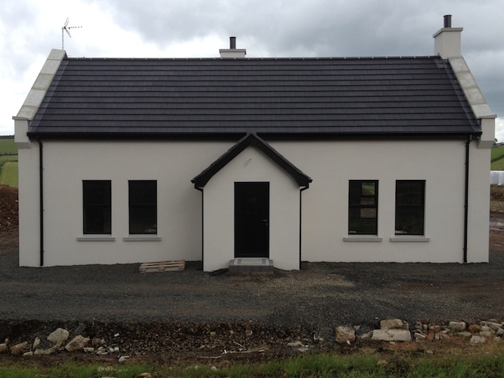 This new build was constructed in 2011/2012. It was built in block work with a 150mm cavity rather than the normal 100mm. This allows for a warmer home and less heat loss. The roof has parapet walls on the gables with stainless steel cavity trays fitted and concrete copings set on top. External render is finished in white Krend plaster.